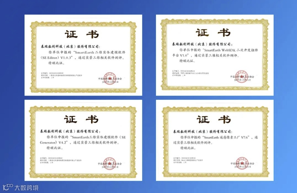 由泰瑞数创自主研发的4款“SmartEarth实景三维平台”生产到应用系列产品,以优异成绩顺利通过“实景三维相关软件评测”。