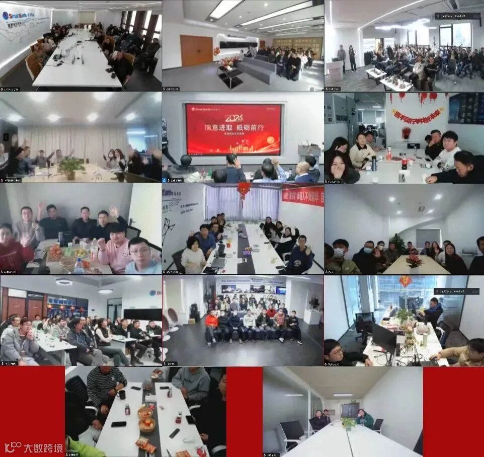 泰瑞北京总部、上海公司、合肥公司、西安公司、深圳公司、沈阳/新疆/保定/成都分公司、南京/长沙/大连办事处的小伙伴们,通过屏幕连线一起拍摄云合影共同纪念这具有意义的时刻,纷纷献上了新春祝福,欢声雷动,热闹非凡,为年会画上温馨的句点。