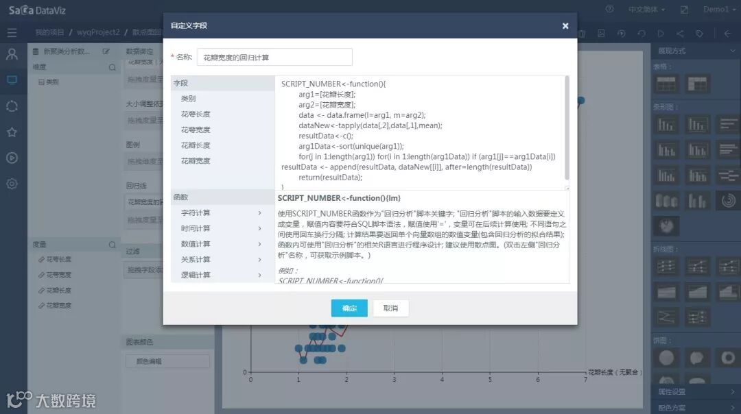 小编带大家看一下 SaCa DataViz 内置的 R 语言常见算法和使用示例