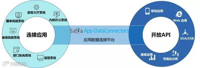 东软 SaCa App-DataConnectors 应用数据连接平台基于系统展现层与应用层的数据连接、开采与融合产品,能够智能地识别与连接不同业务系统之间的应用逻辑,通过重构已有系统的数据读写接口,实现异构系统之间的数据实时获取、业务融合、交互共享和无缝集成,从而实现应用层的系统开放,进而达到对已有应用系统的开放、对接、交互、重构等建设目标,形成跨平台、跨领域的采集、开放、共享、融合的大数据支撑环境。