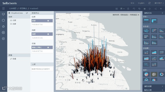 SaCa DataViz 数据可视化分析平台提供近百种数据可视化形式。近期,图表库中新增 GIS 地图可视化、3D 图表等新功能。