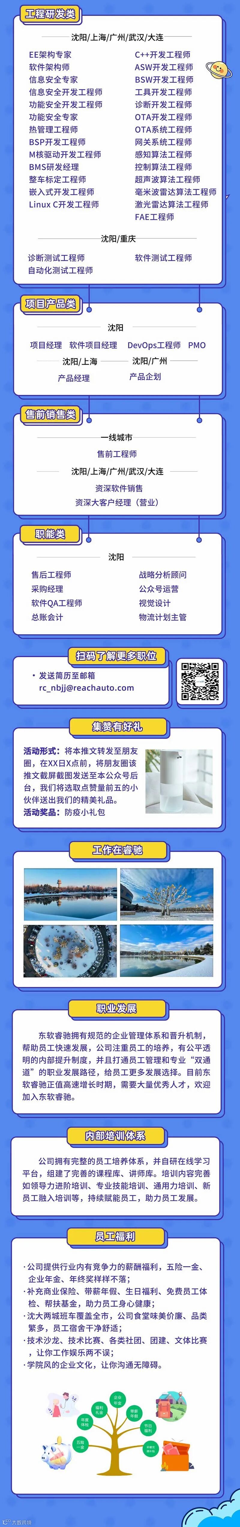 又是一年冬去春来,草长莺飞,勇往直前的睿驰人正在寻找愿意并肩前行的新伙伴。大家是否曾想在不久的某天,在熟悉的东软睿驰,与身边两三挚友一起在食堂大口干饭,一起在项目上攻坚克难,一起钻研业界知识。。。。既然如此,东软睿驰的内推相关,你一定要知道!