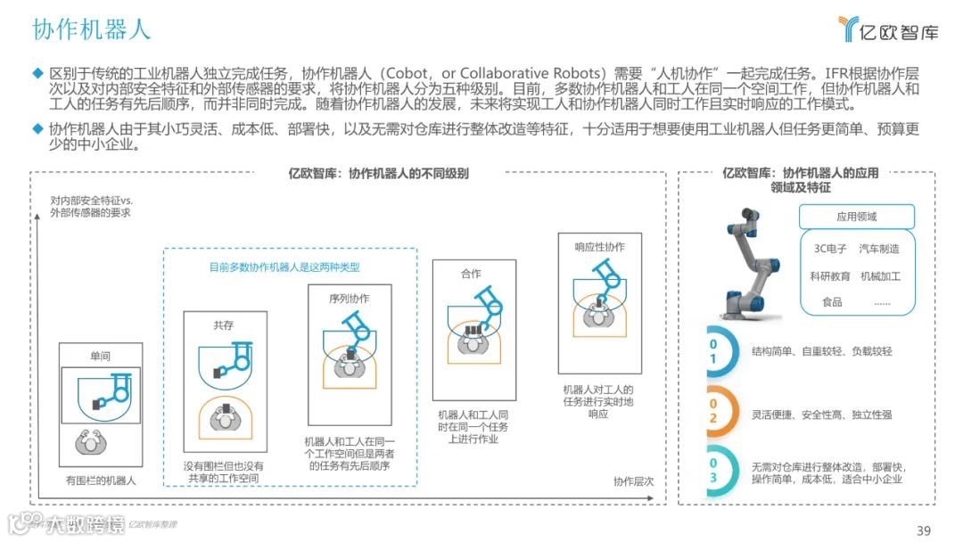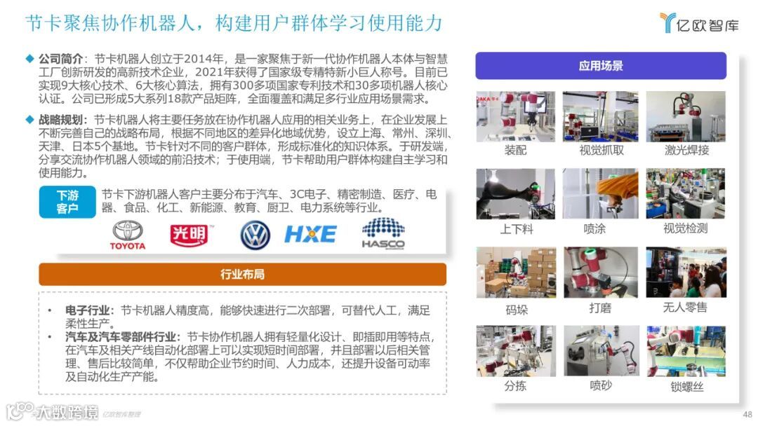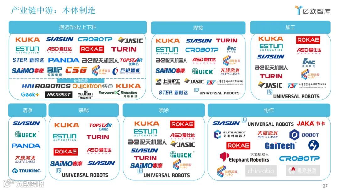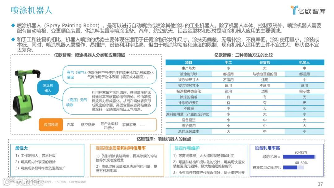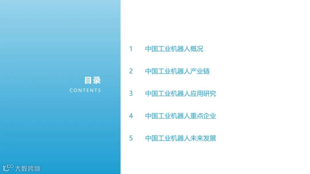 目前,关于工业机器人的报告多以机械结构进行分类,本报告将以应用领域作为分类维度,聚焦市场研究,重点从行业概况、产业链、细分市场、 重点玩家、未来发展多个方面来展现目前工业机器人应用落地情况,希望能为广大从业者和各方关注人士提供有益的帮助。