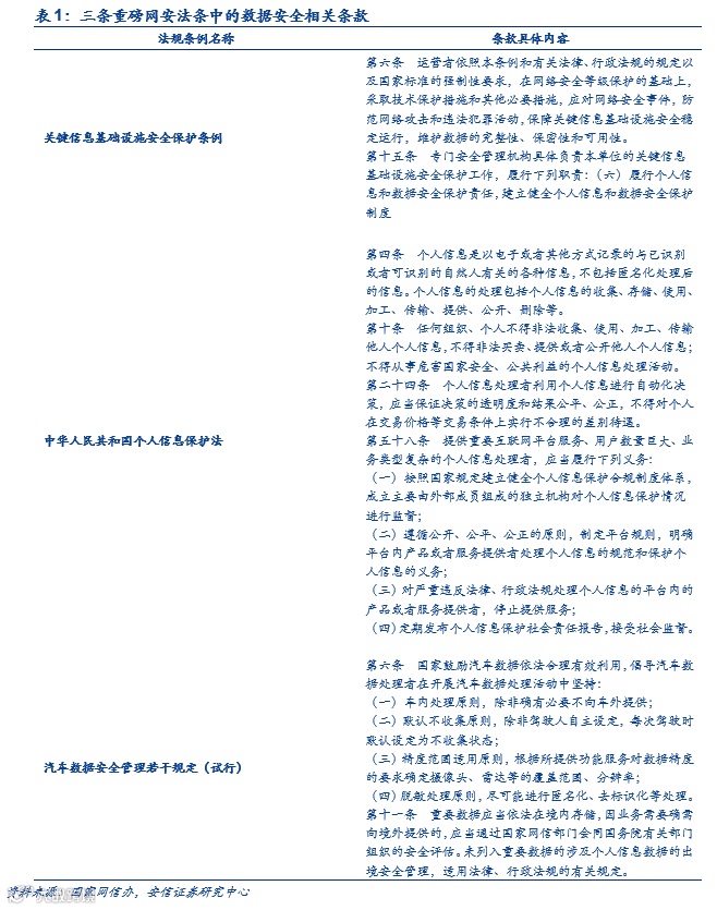 滴滴事件之后,我们连续发布多篇报告强调数据安全将成为今年网络安全的关键词与重中之重。7月10日,网信办发布《网络安全审查办法(修订草案征求意见稿)》,并将在中国企业海外上市过程中发挥主导作用;8月17日,《关键信息基础设施安全保护条例》经国务院第133次常务会议通过,将自今年9月1日起正式施行;8月20日,《中华人民共和国个人信息保护法》已由中华人民共和国第十三届全国人民代表大会常务委员会第三十次会议通过,将自今年11月1日起正式施行;同日,五部委联合发布《汽车数据安全管理若干规定(试行)》,将自今年10月1日起正式施行。