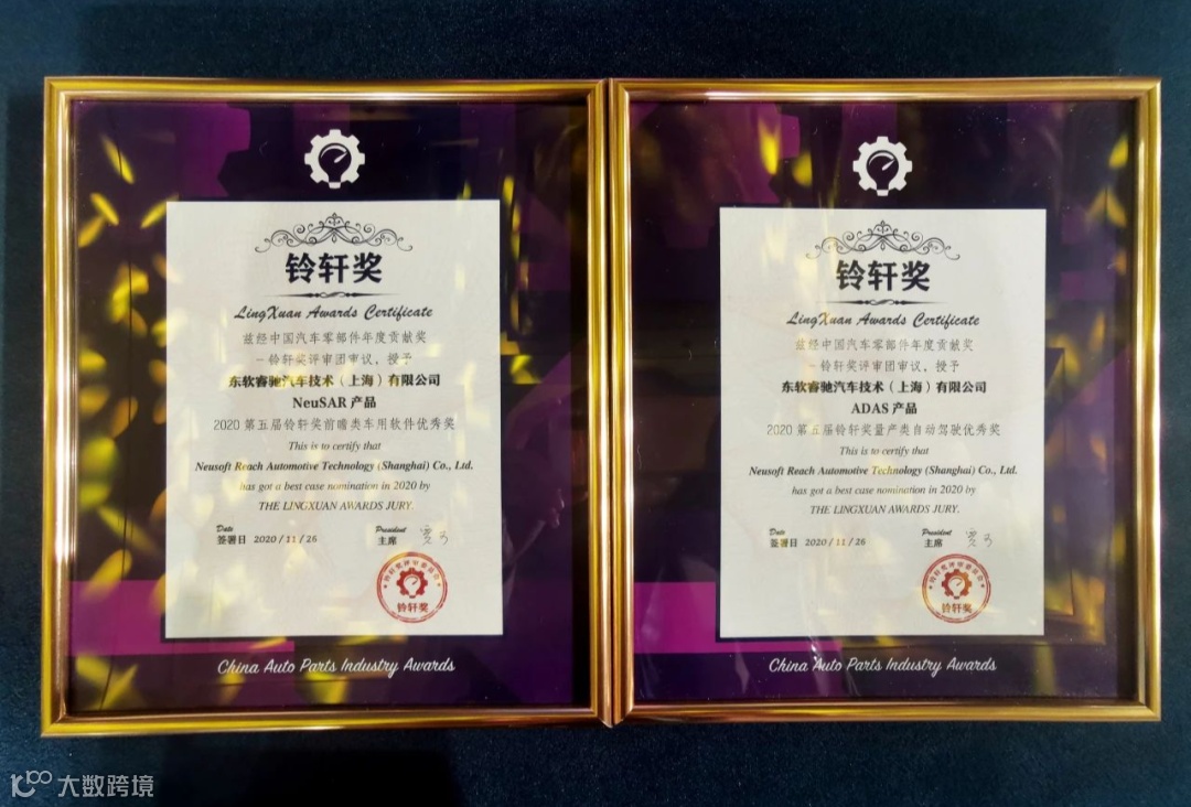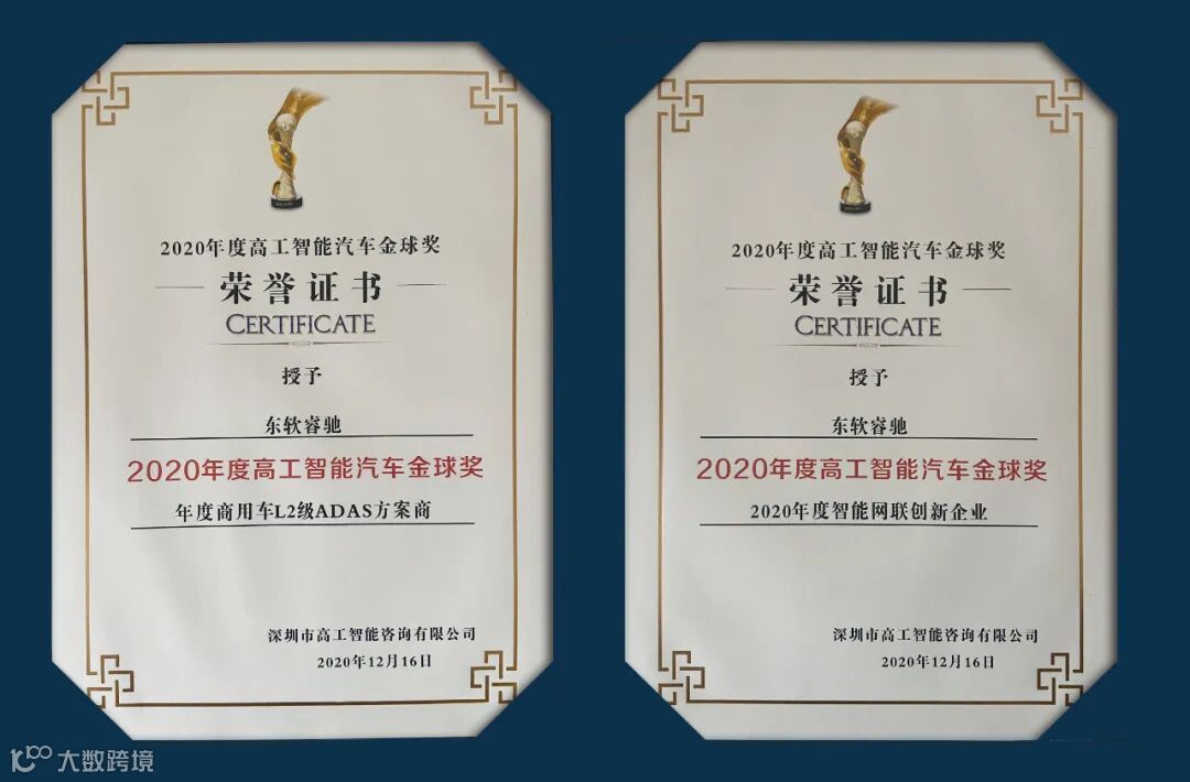 12月17日,东软睿驰再添高工智能汽车“年度商用车L2级ADAS方案商”和“2020年度智能网联创新企业”两项金球奖殊荣。