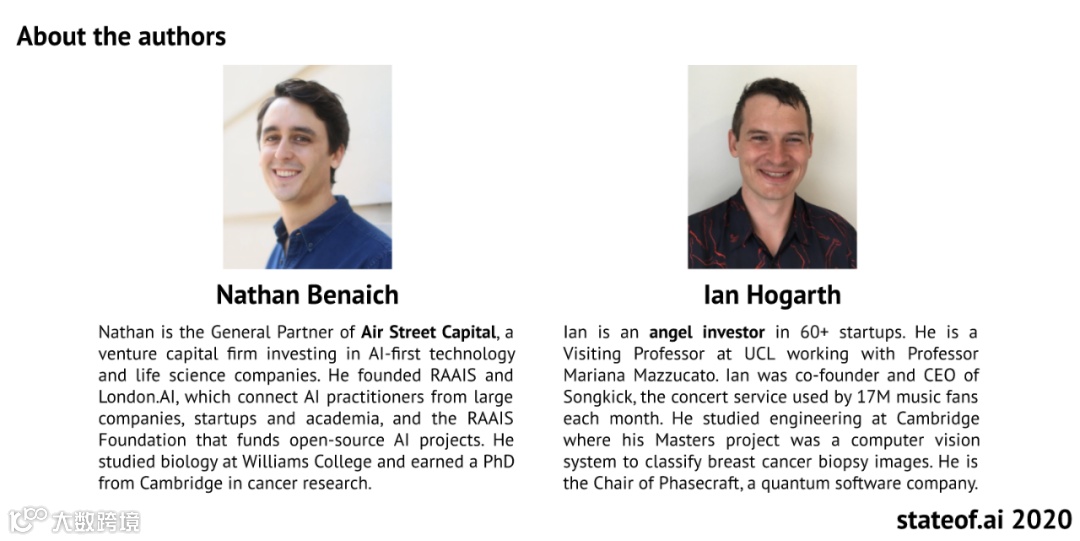 国庆节期间,剑桥大学的两位研究人员Nathan Benaich 和 Ian Hogarth 推出了一年一度的2020 AI 全景报告(State of AI Report)。