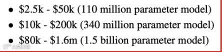 根据Google公布的数据,每1000个参数平均需要花费1美元。这意味着OpenAI训练1750亿参数的GPT-3可能要花费数千万的训练费用。专家推测可能的预算会超过1000万美元。