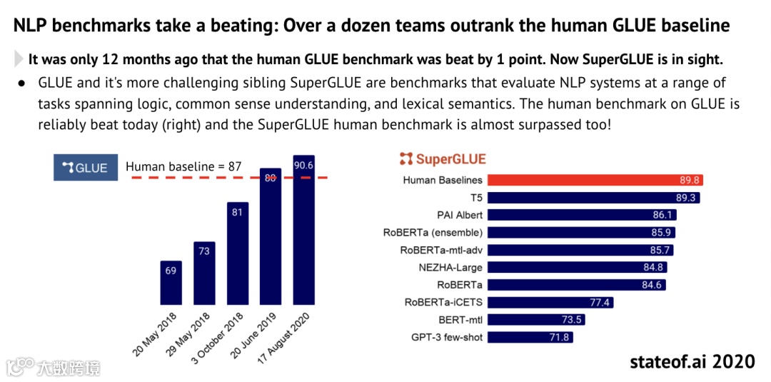 此外,2019年,NLP全新基准SuperGLUE正式发布。十多个团队在GLUE基准测试中超过人类。