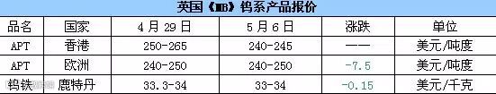 分析原因有:①春节后,3、4月份钢厂招标采购有所增加,对钨铁价格有一定支撑;②钨铁冶炼厂家严格控制库存,库存压力比钨矿/APT轻很多,供需矛盾没有钨矿/APT市场凸出;③5月关税取消,钨铁原来关税高达20%,比其他产品的5%-10%高,因此一取消关税,对国内钨铁市场利好效应更显着。
