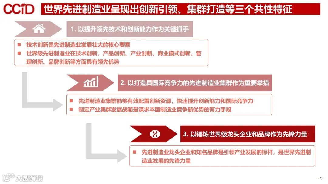 “创新引领、集群打造、锤炼先锋”是世界先进制造业共性特征