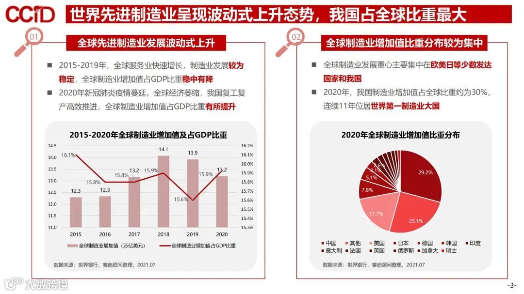 近日,中国电子信息产业发展研究院(“赛迪研究院”)院长张立在世界先进制造业大会上发布《世界先进制造业发展特点与趋势》研究报告,分别从世界先进制造业发展现状、发展特点与趋势、发展建议三个层面展开,深入探讨并分析了世界主要国家在先进制造业领域的成功案例及经验做法,剖析了当下世界先进制造业发展格局,解读了新时期我国先进制造业发展的潜在核心动能。