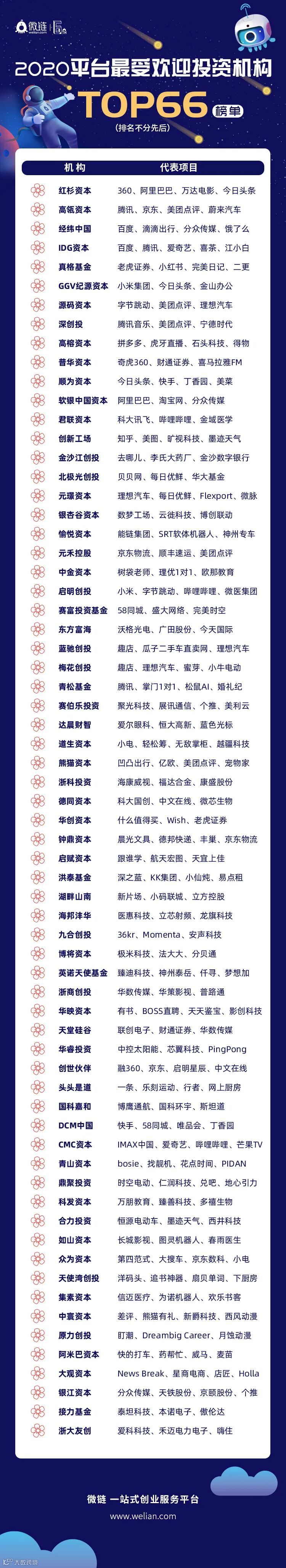 重磅!2020微链平台最受欢迎投资机构TOP66榜单揭晓