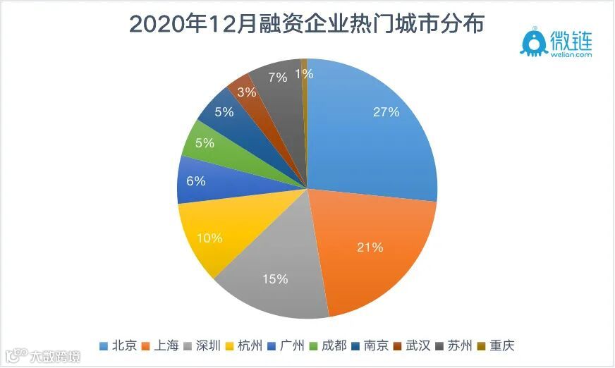 2020年12月融资企业热门城市分布