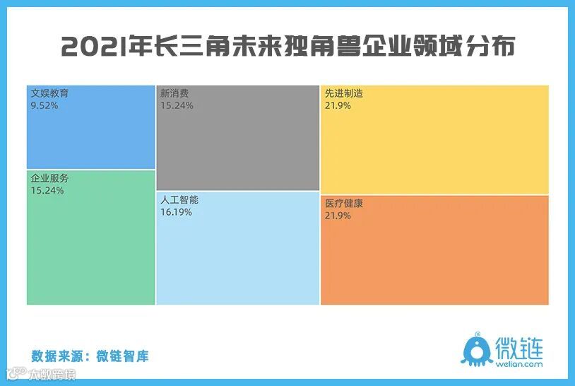 未来独角兽企业主要筛选自先进制造、医疗健康、新消费、人工智能、文娱教育和企业服务这六大领域,这些