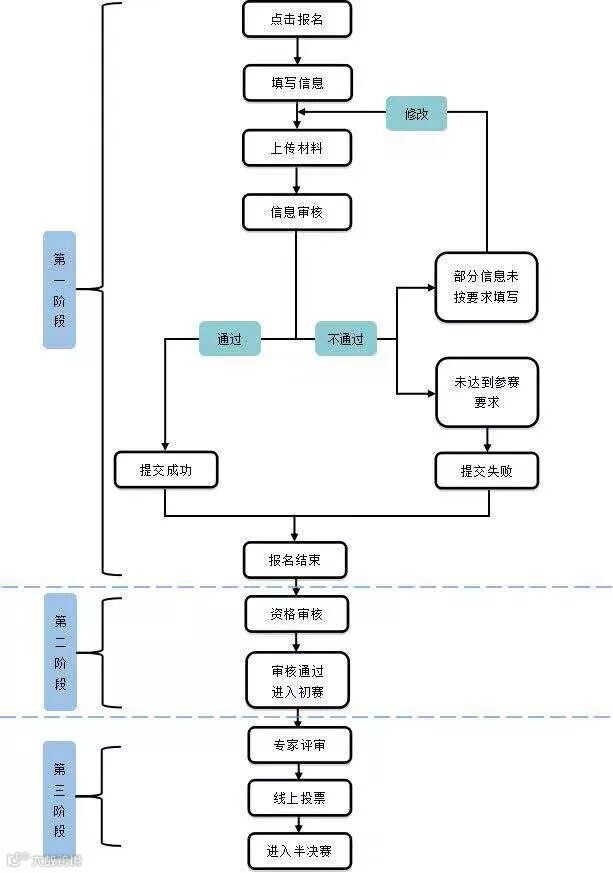 大赛通过“国内选拔赛、海外选拔赛、线上赛”三种形式,分“选拔赛、半决赛、总决赛”三个阶段进行。其中,“线上赛”将通过线上征集、机构推荐,由专家评审结合线上投票的形式筛选10个项目入围半决赛,并与国内、海外选拔赛的24个入围项目共同角逐10个总决赛名额。