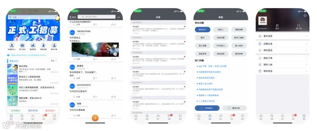 深入走进E录职达app的每个页面的重要功能!最新政策查看,报名通道,接单信息,实名认证,消息获取,客服问答,推荐订单查询,推荐进度,奖金查询等。