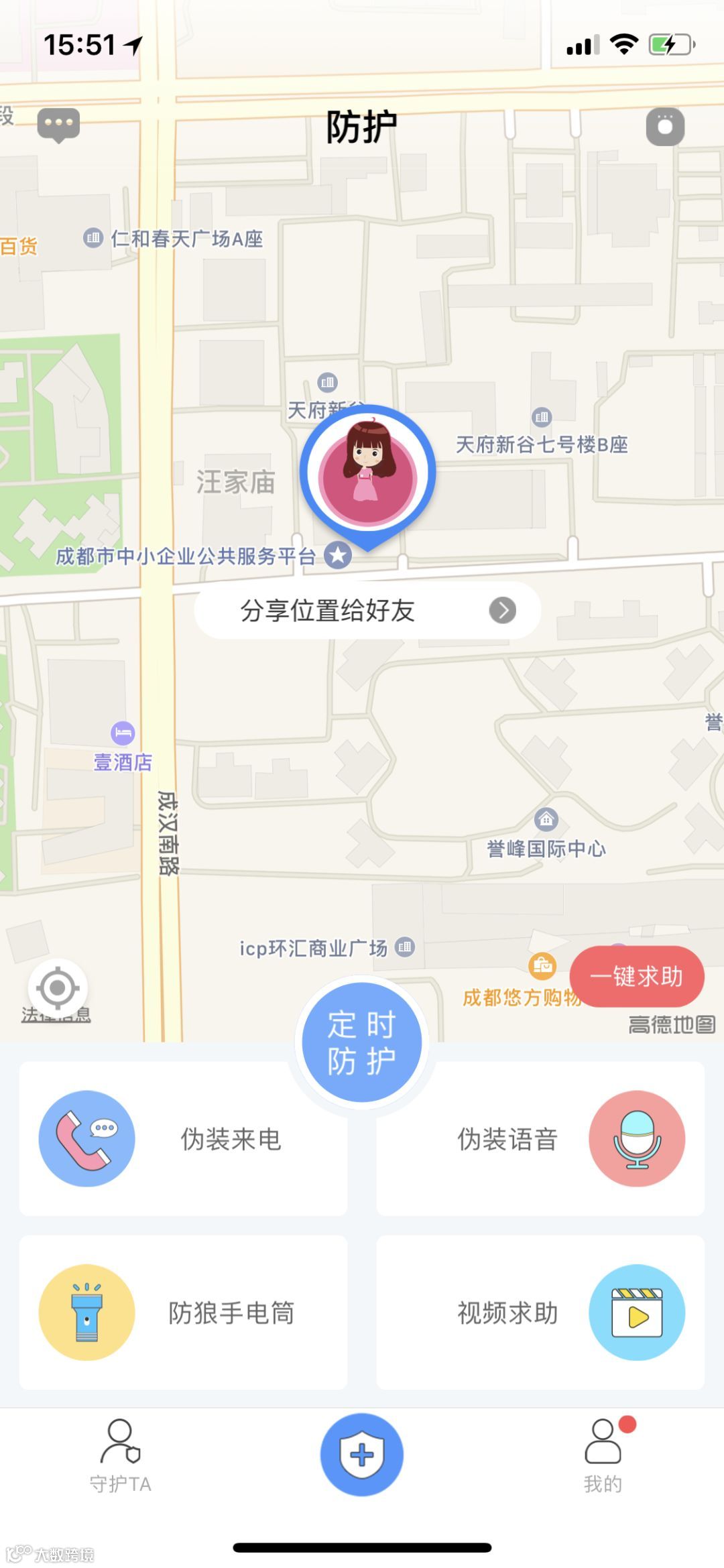 怕怕app上有“伪装来电”、“伪装语音”、“防狼手电”和“视频求助”这些功能,“一键求助”能把你的位置和当下的30秒语音发送给你事先设置好的紧急联系人。