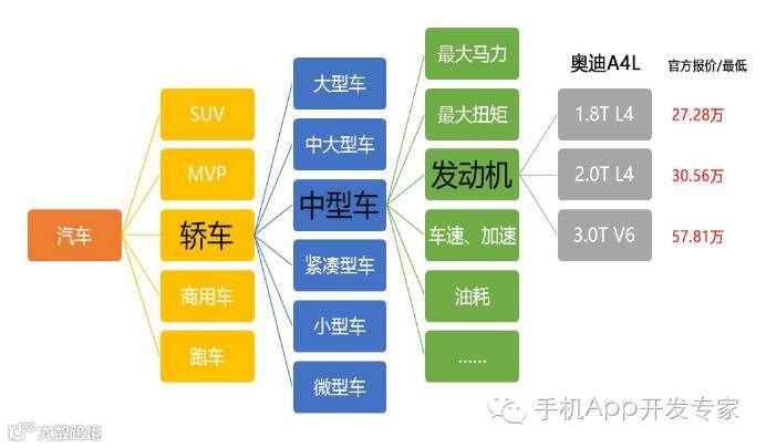奥迪A4L,该车系在售的共有21款,单纯比较发动机,有1.8T L4、2.0T L4、3.0T V6三种,对比官方报价,1.8T L4版最低27万,3.0T V6版最低57万,即使同一车系,外观基本一致,价格差却有30万之多。主要原因还是在需求上,需求影响价格。