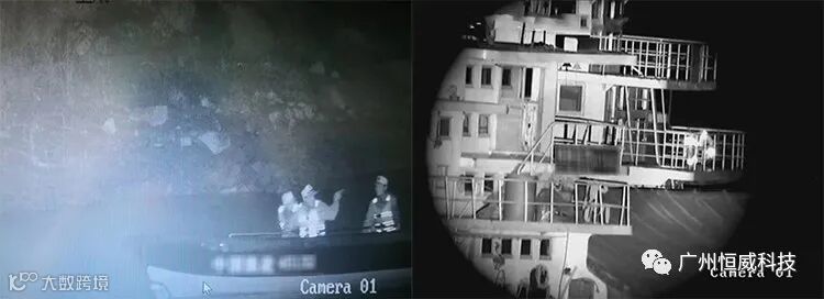 无论是执法作业还是海上巡逻,夜晚在海上行动都面临着光线不足的问题。可见光摄像机只能在白昼实现海上高清监控,即使配置了辅助照明装置,在夜晚也会因为海水的反射令画面模糊不清。而在高灵敏度红外热像仪的图像里,监控范围内物体的轮廓可以清楚地呈现在画面中。