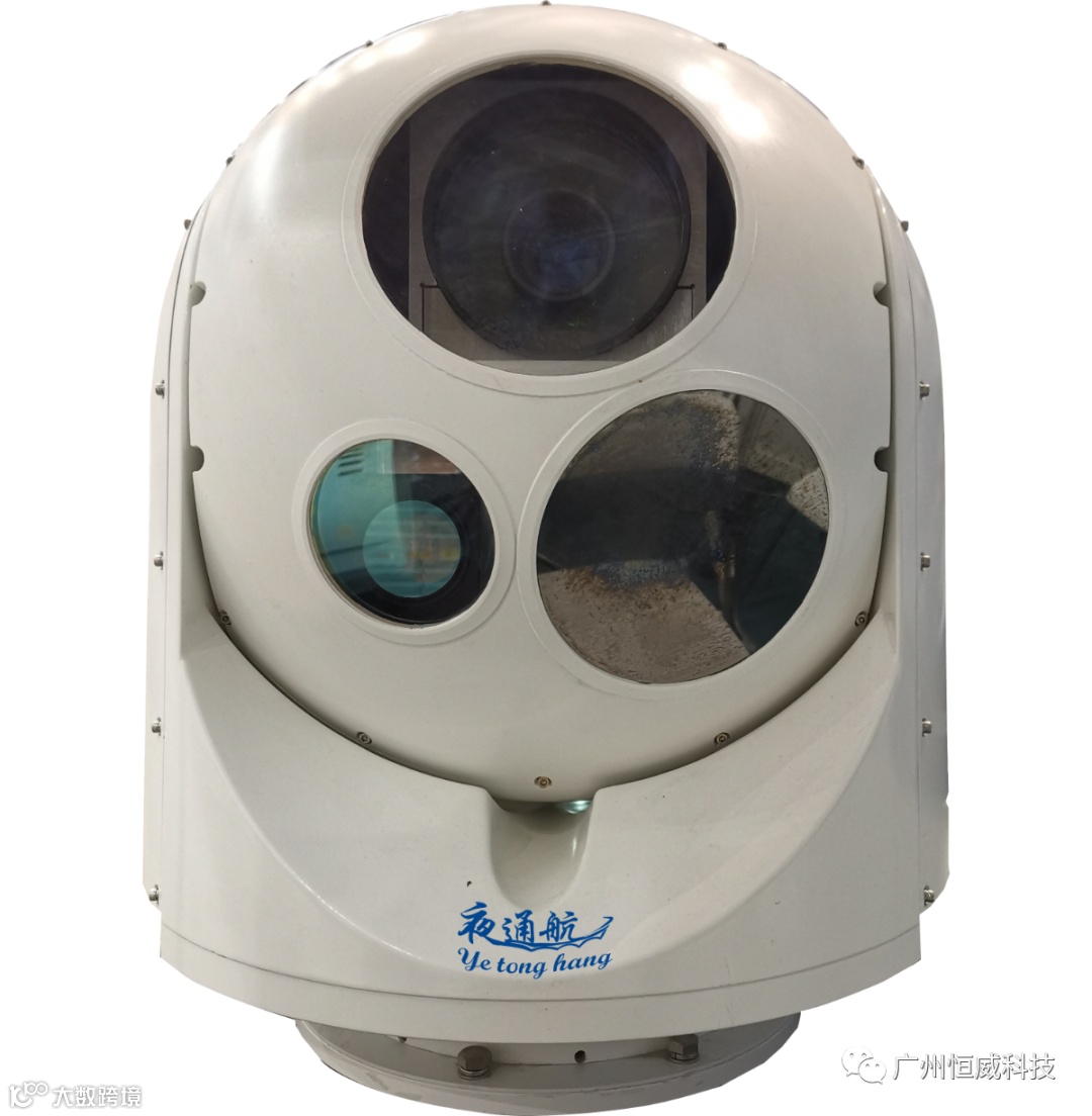 白天使用变焦透雾摄像机对船舶周围及远距离水面作全方位搜索与监视。夜晚可通过配备激光辅助照明器,以确定并看清目标的特征,达到夜间执法取证的目的。根据公务船以及执法环境的实际需求,激光照明器也可换成激光测距或者高清微光摄像机。多光谱光电系统的高度集成,需要利用陀螺稳像模块,搭配高性能云台,才能有效隔离海上强风引起的摇摆,保证成像画面清晰稳定。