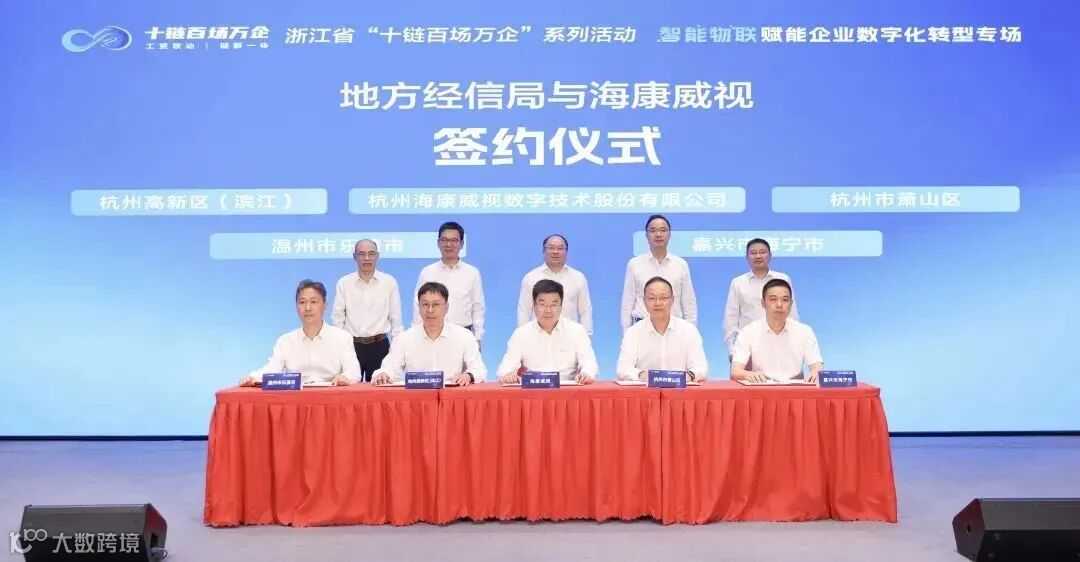 活动上,杭州市滨江区、杭州市萧山区、温州市乐清县、舟山市普陀区、舟山市岱山县、嘉兴市海宁县、衢州市衢江区、湖州市吴兴区与海康威视签约;中国电子学会、中国工业互联网研究院与海康威视签约;浙江省物联网产业协会、浙江省企业信息化促进会、浙江省企业技术创新协会、浙江省汽车行业协会、浙江省半导体协会与海康威视签约。