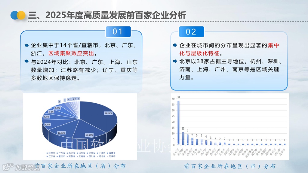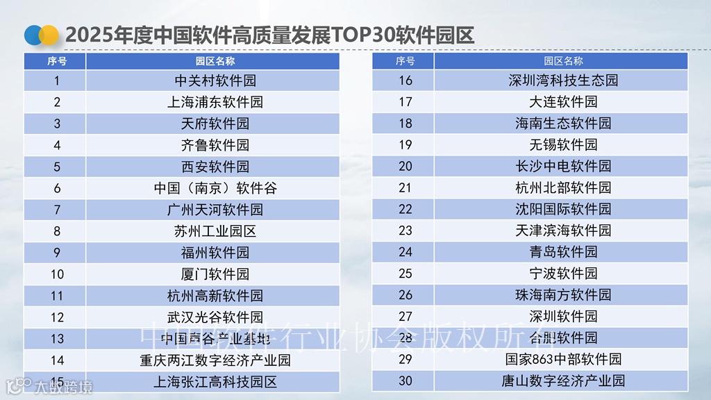 《报告》依据《软件企业高质量发展评估标准》(T/SIA 044—2025)和《软件园区高质量发展评估标准》(T/SIA 062—2025),结合调研数据、公开资料等,形成“2025年度中国软件高质量发展前百家企业”和“2025年度中国软件高质量发展TOP30软件园区”,不仅为行业树立了企业与园区发展的标杆典范,更通过清晰的评估维度与量化指标,为广大软件企业与园区指明了提升方向,助力推动产业资源向优质主体集聚,加速构建自主可控、协同共生的软件产业高质量发展生态。