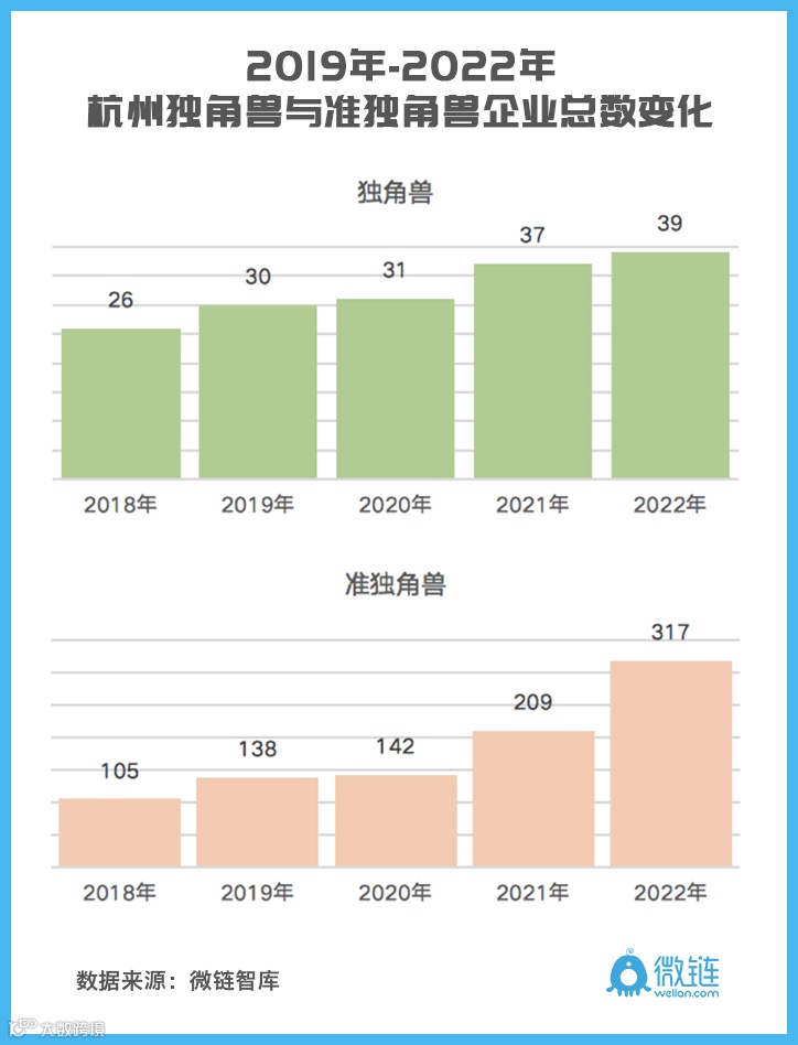 平台「微链」联合杭州市创业投资协会共同发布《2022杭州独角兽&准独角兽企业榜单》。