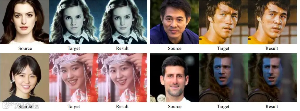也就像我们在展示的那样,不用精挑细选“正脸”或“中性表情,直接从网上抓一把人物图片,也能够完美换脸。