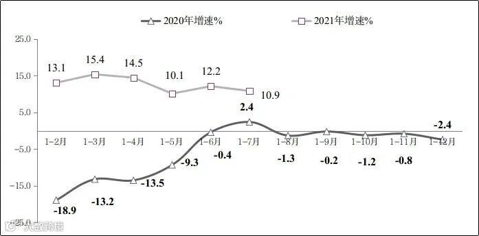 图2 2020年-2021年1-7月软件业利润总额增长情况