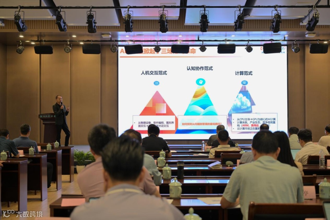 主题报告环节,阿里云智能集团科技研究中心高级专家罗治兵发表了题为“拥抱云+AI定义的智能时代”的演讲。他深入剖析了当前人工智能大模型的技术进展与未来趋势,阐述了“公共云+AI”如何有力支撑科技创新、助力千行百业智能化转型升级,并对大模型对软件产业的价值提升和产业重构做了全面的思考和分析。