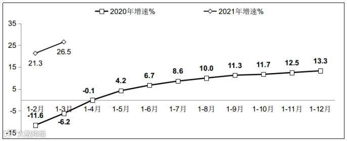 图2 2020年-2021年一季度软件业利润总额增长情况