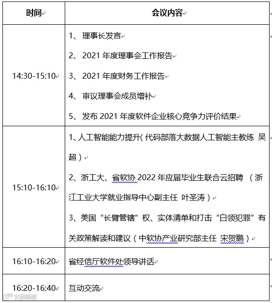 1、主会场参会人员:省经信厅软件处领导、协会名誉理事长、理事长、副理事长代表、监事长、专家委代表、工作委代表、演讲嘉宾及秘书处相关人员。