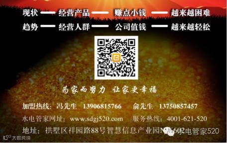 而水电管家就是针对建材行业困境而专门开发的一整套系统解决方案,正所谓得水电工者得天下,水电管家将为您开创一个全新的蓝海市场。