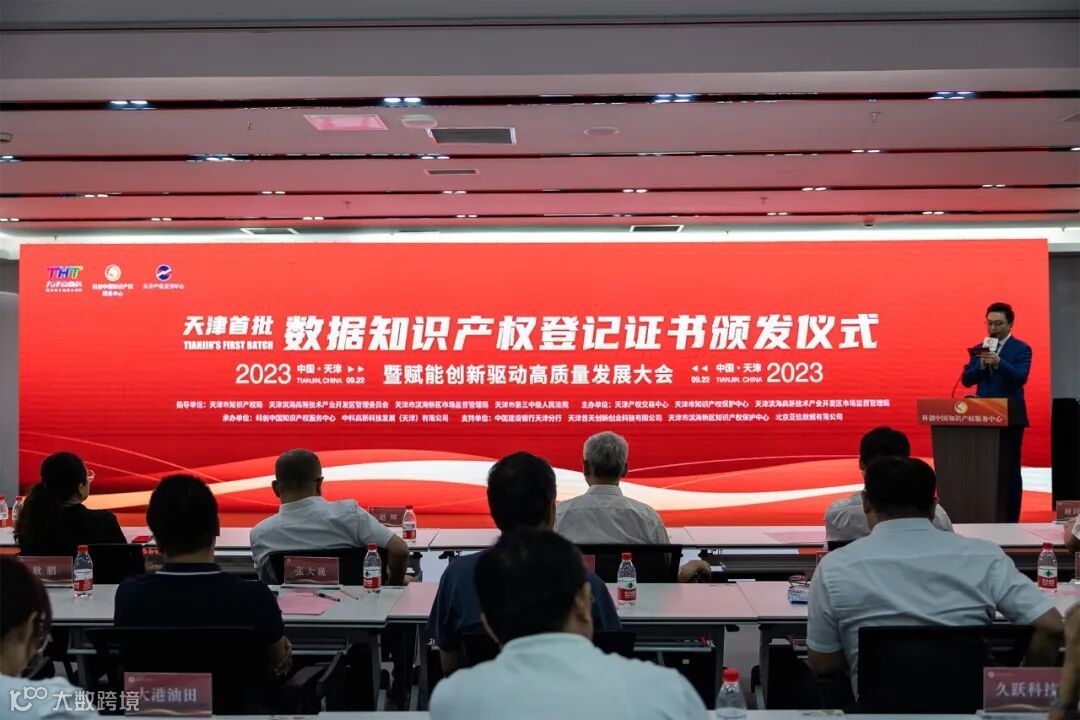 9月22日下午,天津首批数据知识产权登记证书颁发仪式暨赋能创新驱动高质量发展大会在天津滨海高新区科创中国知识产权服务中心举行,国家知识产权局规划司综合业务处、天津市知识产权局、天津滨海高新区管委会、天津产权交易中心、天津市第三中级人民法院知识产权法庭、天津市滨海新区市场监督管理局、天津市知识产权保护中心、天津市滨海新区知识产权保护中心等负责同志以及来自学术界、司法界、产业界等代表共计50余人出席。