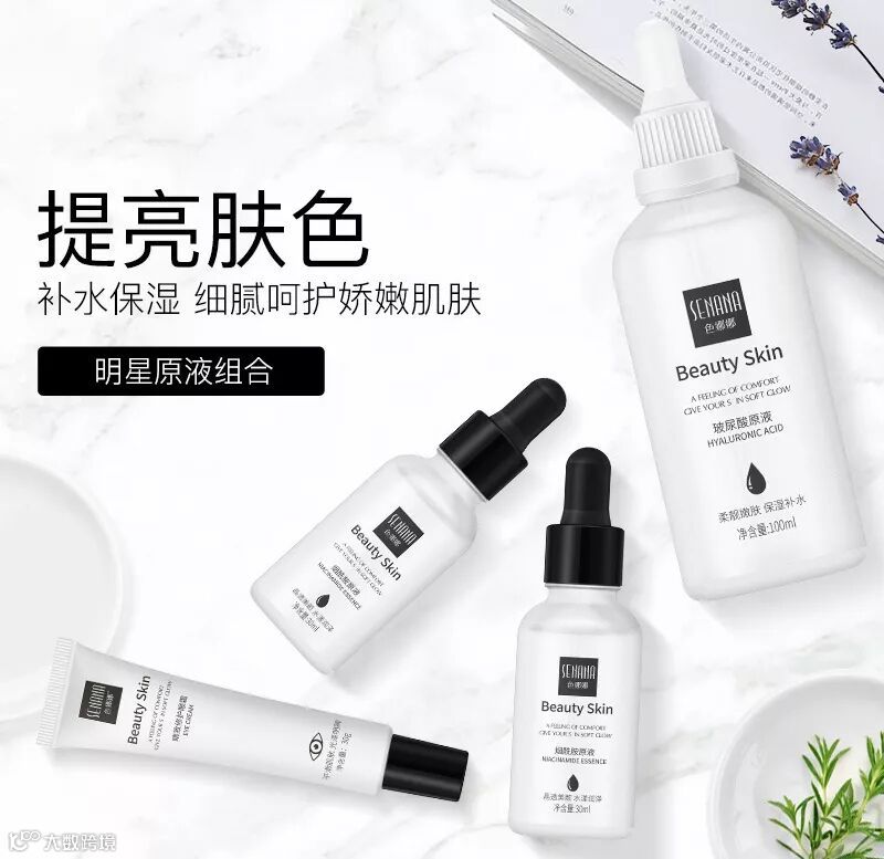 【推荐理由】爱美是人的天性,但肌肤暗黄长痘,都是当代青年男女的一大皮肤困扰。烟酰胺套装含有烟酰胺原液、玻尿酸原液、六胜肽原液跟修护眼霜,有着美白,补水,抗皱,淡化痘印等效果,可DIY组合搭配,深受当代年轻人青睐。2年内售出10万+,好评率高达97.35%,口碑销量双丰收的一款产品,非常适合店铺跑量做口碑!