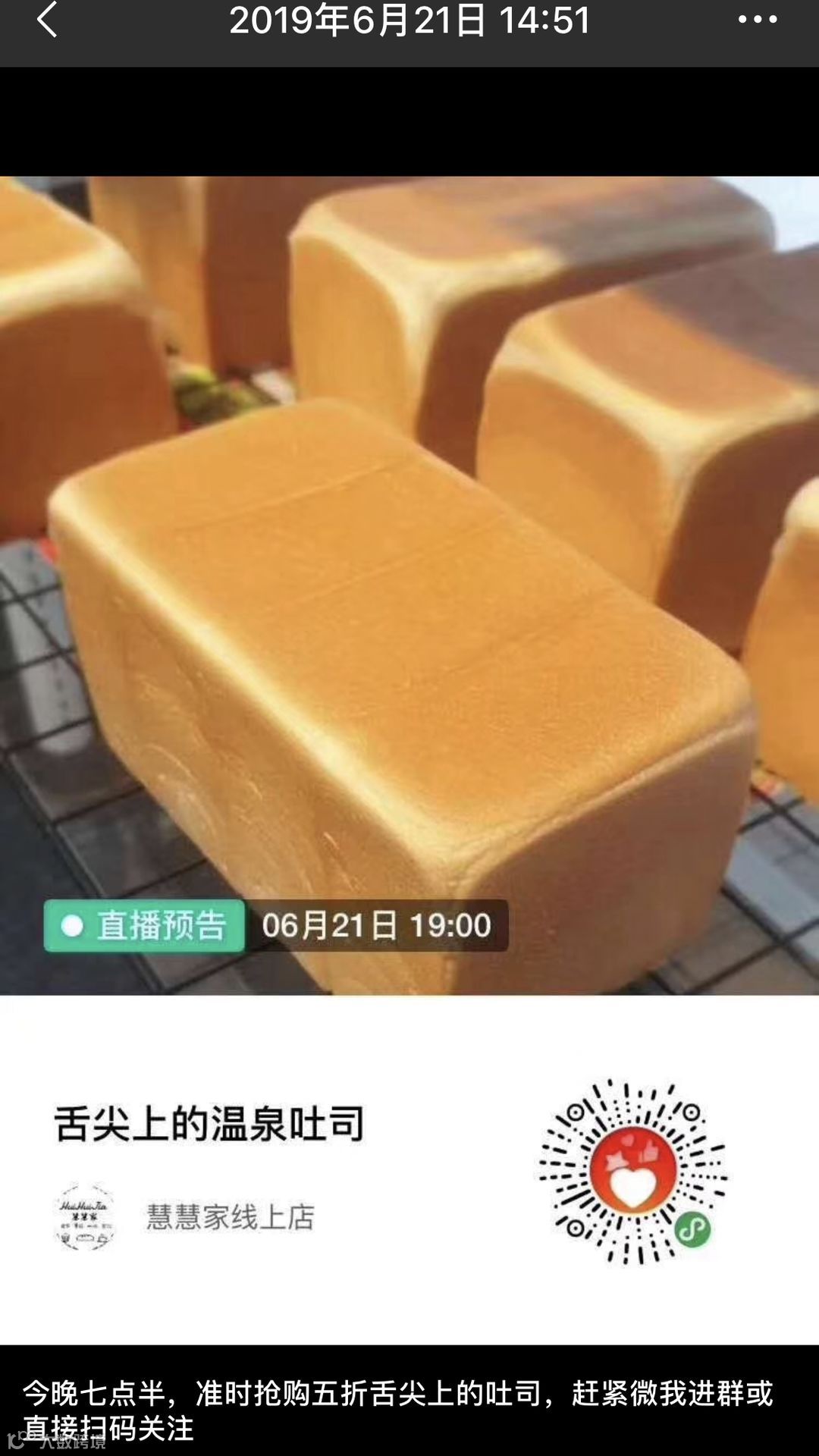 ② 线上观看直播 19:30 准时抢购五折吐司,限量 50 份。