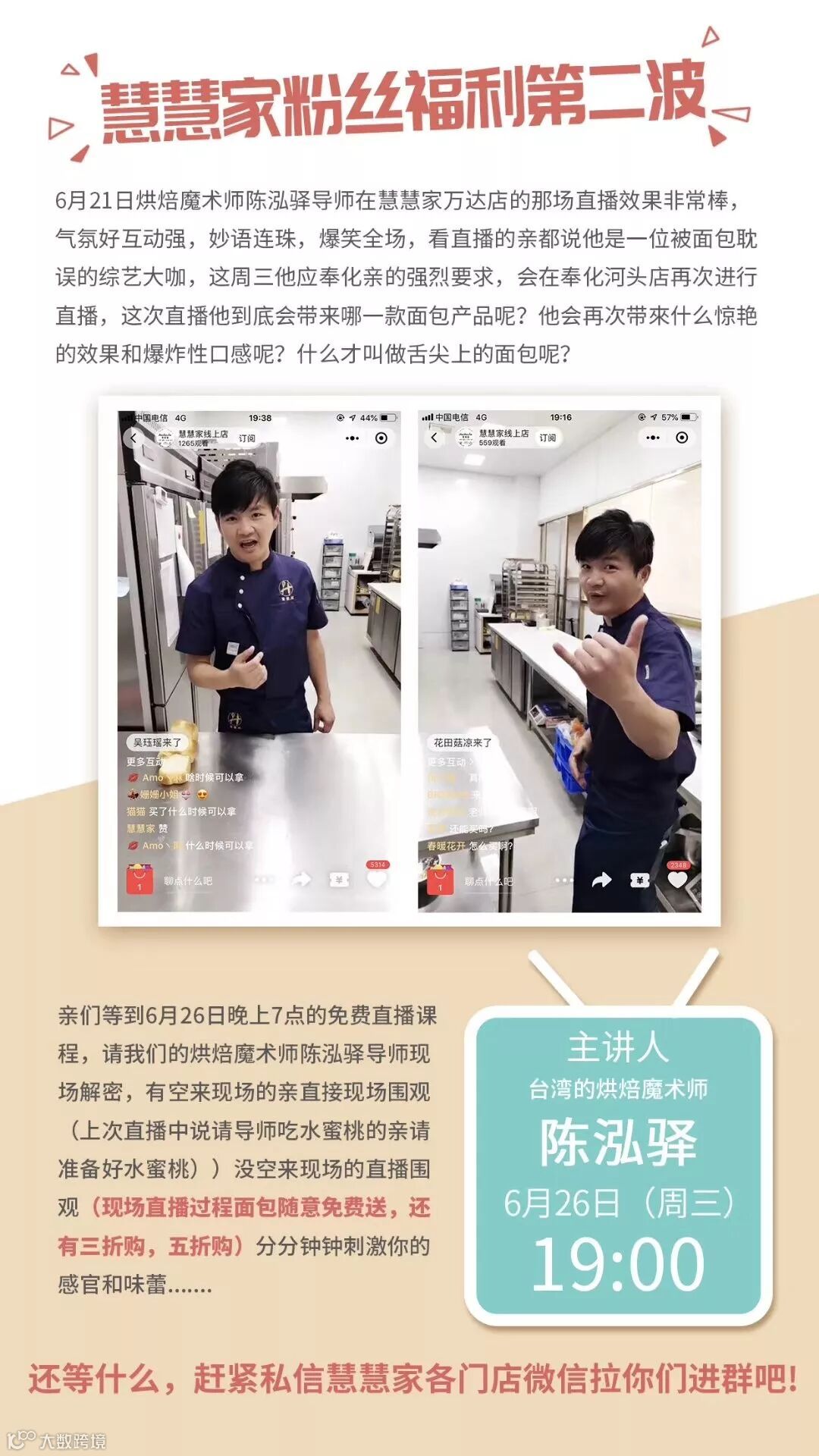① 来现场观看直播的伙伴可享受面包免费送和三折、五折购;