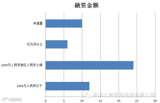 轮次分布上:A轮之前的融资共22起,约占总数的42%,A轮有18起,约占总数的34%,B轮有6起,,C轮有3起,E轮有1起,F轮有1起,IPO上市及以后有3起。可以看出,早期融资仍为主力。