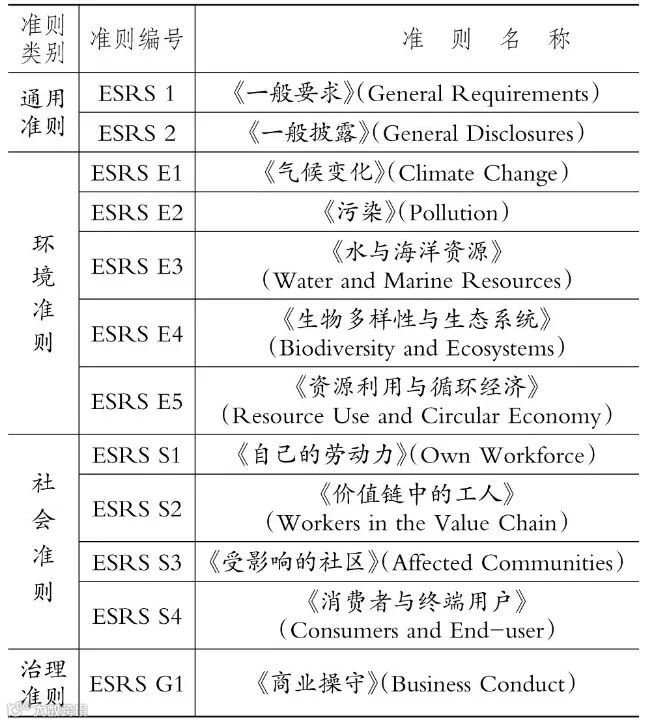 根据EFRAG的提议,ESRS共有12个,包括2个跨领域交叉准则及10个环境、社会和治理主题准则,涵盖全方位的可持续发展问题: