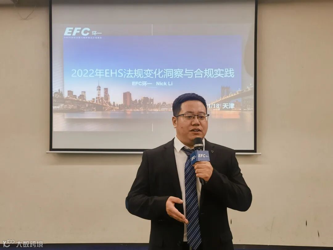 近年来,我国EHS法律法规飞速更新,今年10月就颁布了近700条。Nick先生从“企业环境信息披露”、“个体防护装备配备”、“消防设施”、“天津市生产经营单位安全生产主体责任规定”等方面,就2022年新法规进行了解读并分享了监管趋势。