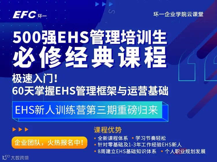 环一咨询(EFC)是亚洲地区环境健康安全与可持续发展服务的领导者,致力于客户所关心的环境、健康、安全和能源问题,为不同的行业提供创新和可执行的解决方案,我们以实践技能和提供能力建设辅导而享誉盛名。