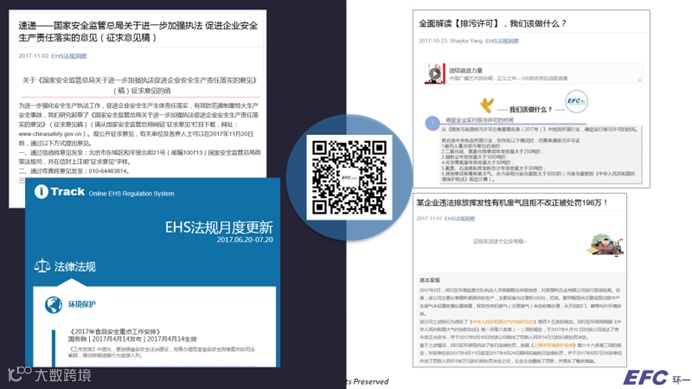 这是环一提供差异化服务和体现专业能力与工厂实践能力的环节,我们会根据每月和每季度的法规变化,为订阅客户提供定制的法规政策解读,包括邀请政府机构相关专家的深入解读和分享合规要点。