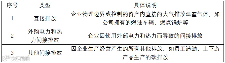 一般来说,一个企业的碳排放分为下表所示的三种。