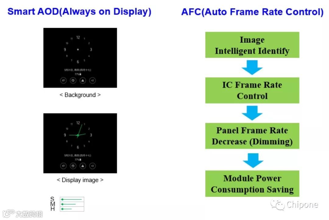 在省电方面,IC还做了特殊的设计方案,Smart AOD功能使得面板在待机模式并显示时钟时达到最优的省电效果。