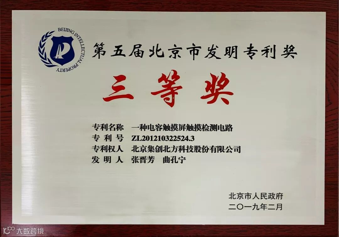近日,第五届北京市发明专利奖共评选出获奖项目36项。北京市发明专利奖是北京市政府为表彰在本市行政区域内具有重大经济社会效益的发明专利而设立的专项政府奖励项目获奖专利具备技术水平高、经济效益好、具有市场竞争能力等特点。集创北方的专利《一种电容触摸屏触摸检测电路》获颁三等奖。