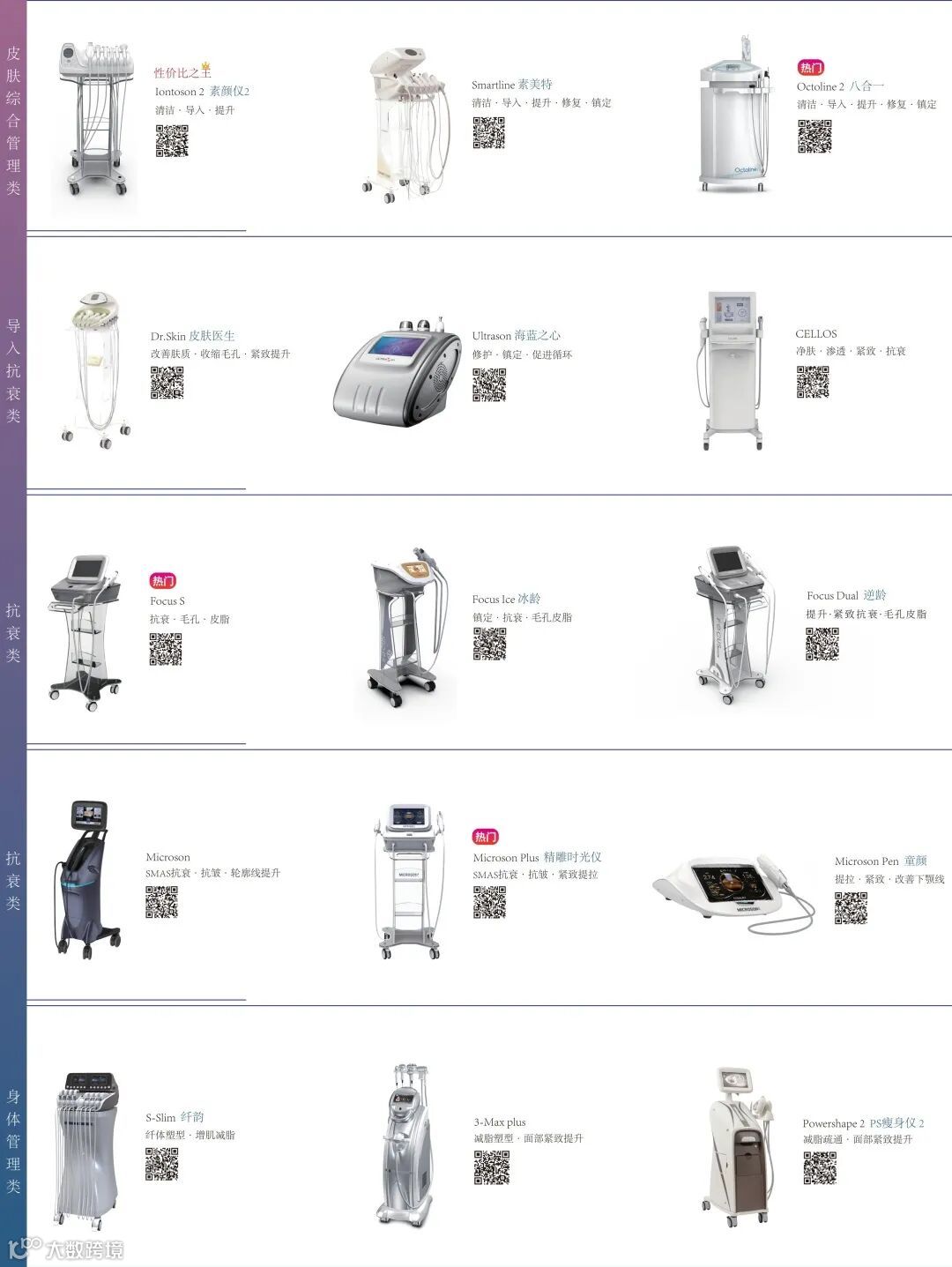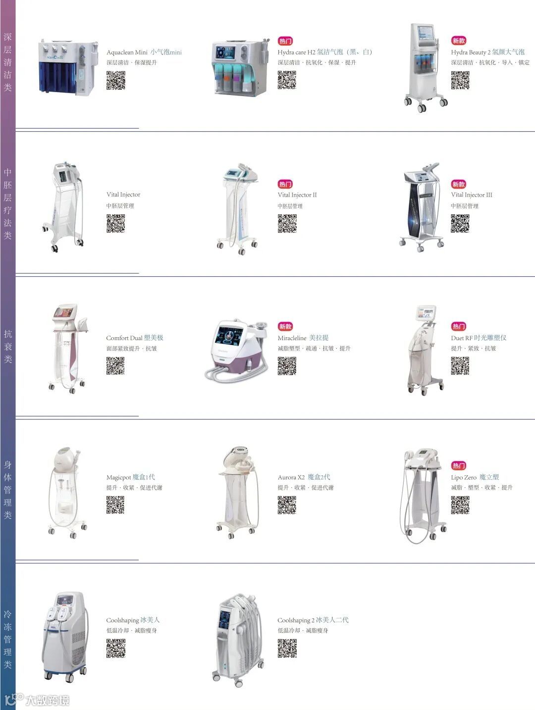 ▶公司拥有强大的自主研发能力,并积极引进国内外的高科技医疗美容项目及技术,不断加强医疗美容行业的生产研发,陆续推出了适应市场追求的新技术、新产品、新项目,为更多的爱美人士带来便利条件。公司产品覆盖激光、水光注射、RF(射频)、负压吸附与RF协同纤体廋身、集聚超声、等离子等技术领域,产品包括:精雕时光仪、魔立塑、M3美立方(水光注射)、小气泡清洁系统、全能光学美肤系统、冷冻溶脂纤身系统、水氧治疗仪、高机能护肤品等10余个系列的产品。