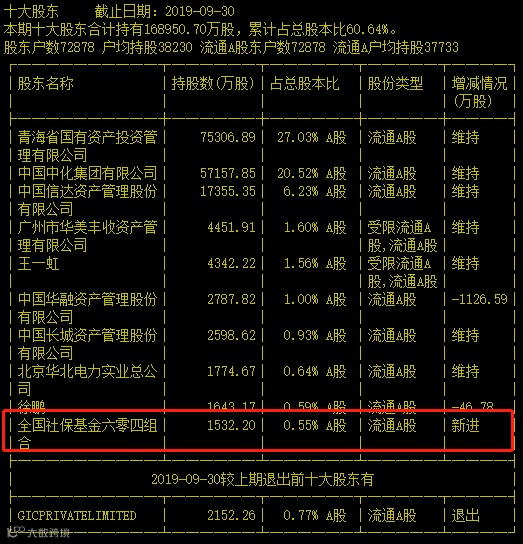 另外,记者注意到,截至2019年12月31日,*ST盐湖股东数为6.85万,其中前十大股东中,多为国资背景股东,第十大股东为全国社保基金六零四组合,持股其1532.2万股股份。
