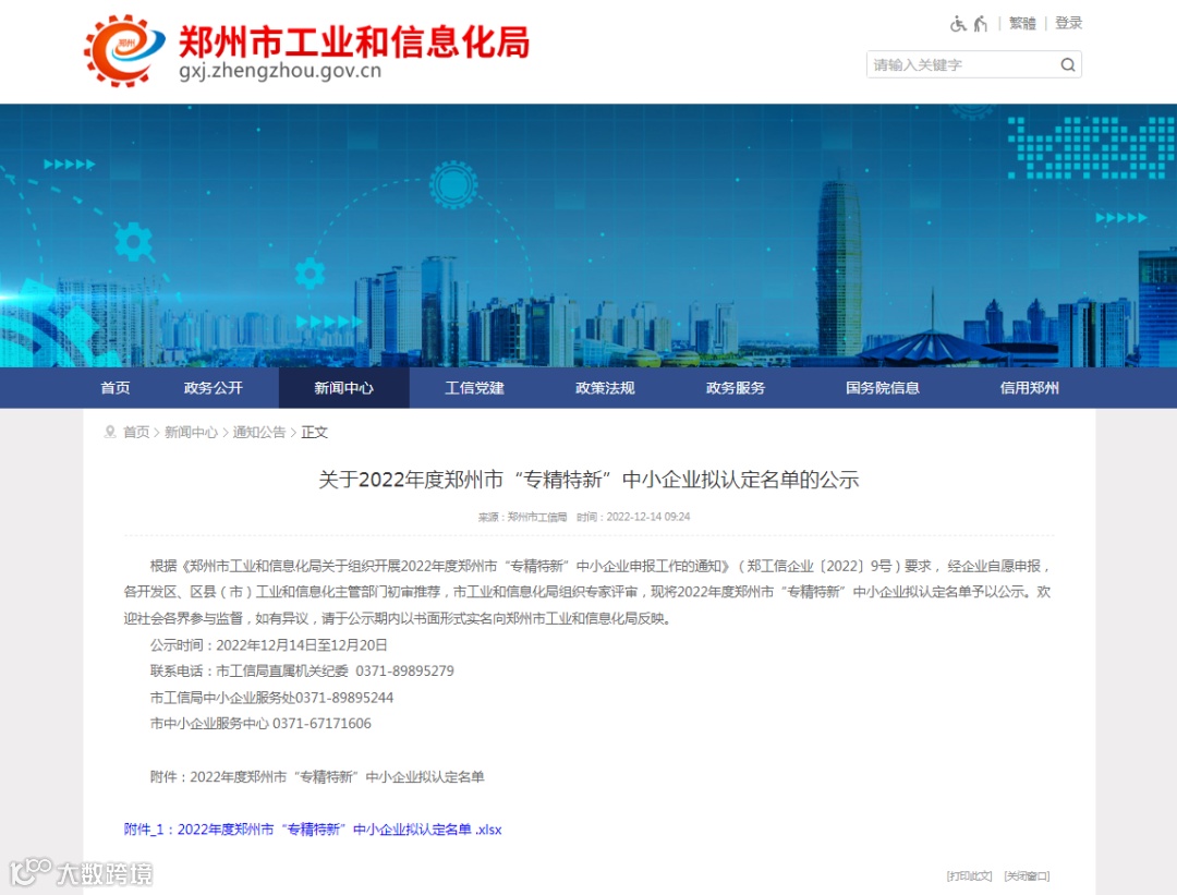 近日,郑州市工信局公示了2022年度郑州市“专精特新”中小企业拟认定名单,共计1188家入选,思维列控榜上有名!