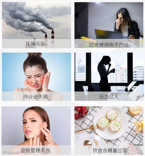 世界卫生组织(WHO)的调查报告表明:在黄种人中,面部皮肤处于健康状态的不到10%,处于病态的超过20%,处于健康与病态之间的亚健康皮肤竟占70%。皮肤亚健康的最主要表现形式就是“敏感性皮肤”。因为屏障受损,皮肤失去抵抗力。各种外侵导致皮肤的各种炎症发生,而当皮肤反复发生炎症时,就会进一步加剧皮肤屏障受损。也就是进入受损---〉炎症---〉进一步受损—〉更糟糕的炎症。炎症的主要表现形式之一就是痤疮,也就是痘痘。