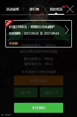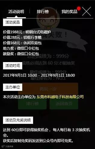 第三步:在30秒内完成挑战,进入摇一摇抽奖